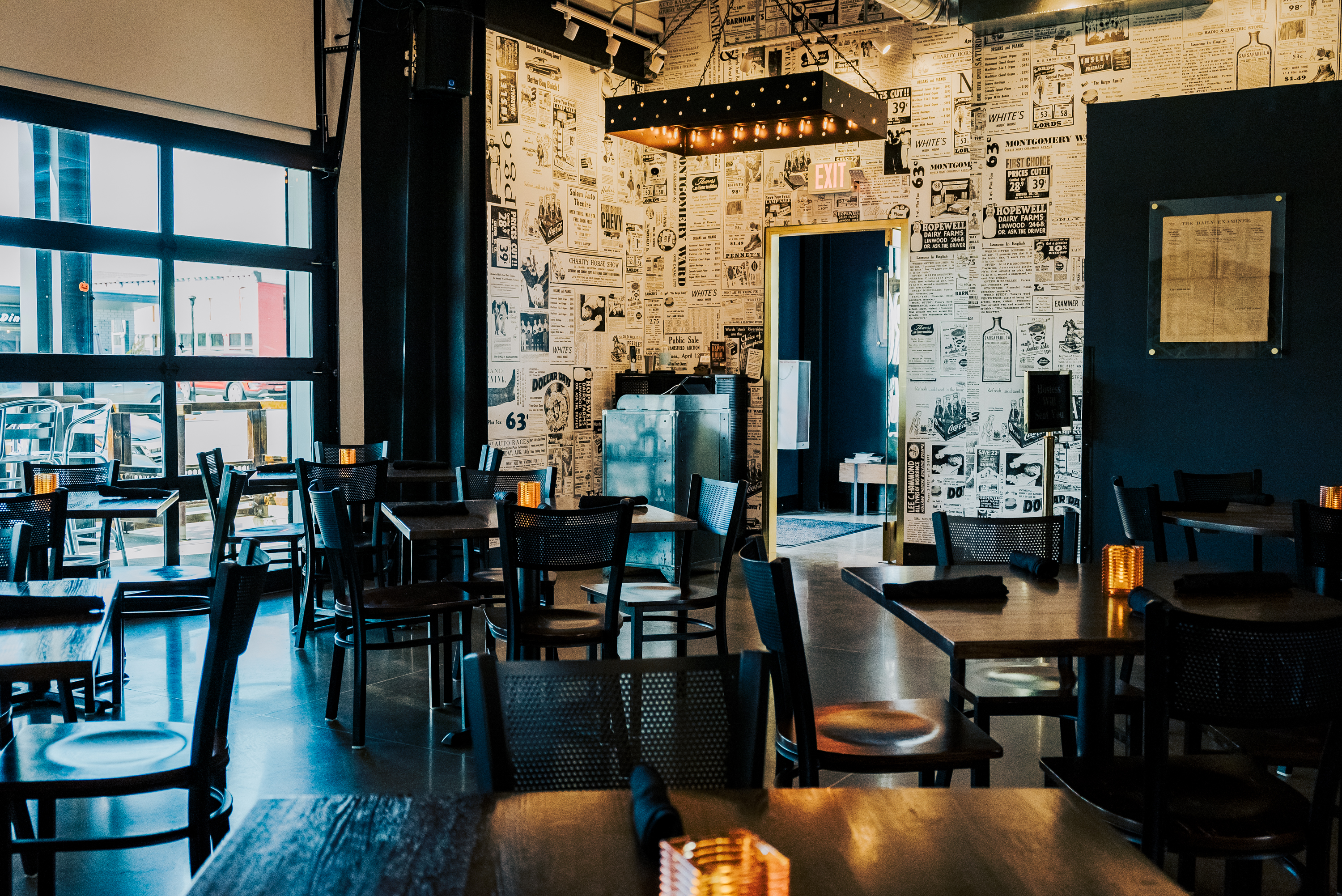 The centerpiece of our establishment is our custom-built bar, crafted with salvaged glass windows and topped with luxurious quartz countertops reminiscent of a New York-style news kiosk. Additionally, our walls are enriched with local Ohio newspapers from bygone eras, each telling a story of our town's rich heritage.